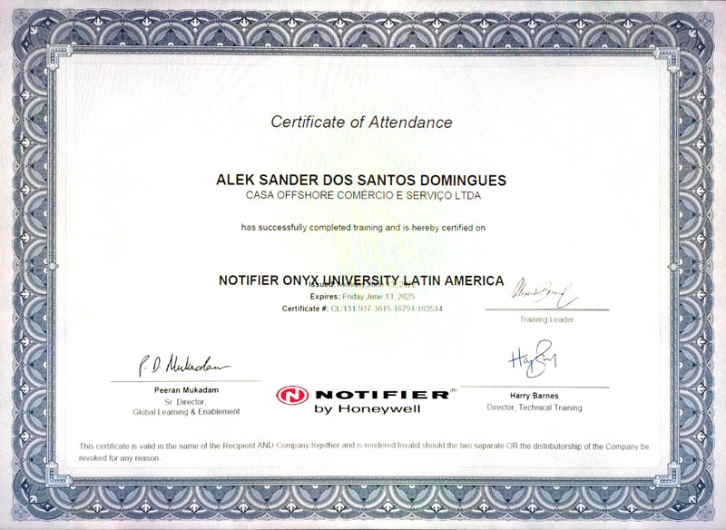 - Calibração RBC, alinhados a certificação ISO 9001 da Casa Offshore para detectores de gases.